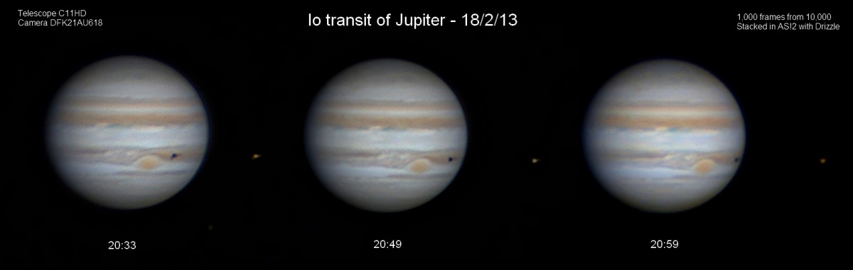 18-2-13 Jupiter composite with Io and Io's shadow, Celestron C11 EdgeHD, DFK21, 2x Televue Barlow,