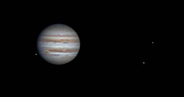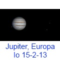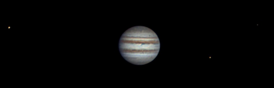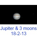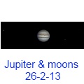 15-2-13 Jupiter with Europa to left, Io above right and Ganymede lower right, Celestron C11 EdgeHD, DFK21