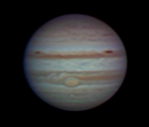 1-12-11 Jupiter, Skywatcher 250 dob DFK31, 5x Televue Barlow, Registax 5.