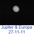 27-11-11 Jupiter with Europa, Skywatcher 250 dob DFK31, 3x Televue Barlow, Registax 5.